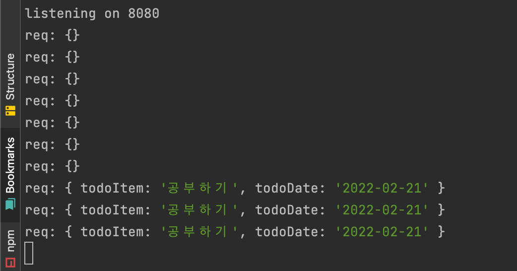하지만 node.js에서는... 아무리해봐도 데이터가 안오는거다.