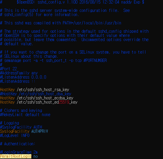 리눅스 Root 계정 ssh 접속 막기 root의 ssh 접근을 허용해놓으면, 중국과 같은 나라에서 무차별적인 접근을 시도하므로, ssh 접근을 꼭 막도록 하자. ※ root로 ssh 접근 막기 전에 ssh 로그인이 가능한 별도의 계정을 필히 생성할 것!!! 1. sshd config 파일 오픈 [root@hostname]# vim /etc/ssh/sshd_config 2. PermitRootLogin의 설정 값을 no로 설정 3. :wq로 저장 후 빠져나온다 4. ssh 데몬 재시작 [root@hostname] service sshd restart 이제 root로 ssh 접속 시, 접근이 거부 된다 Etc/Linux 2020.05.24